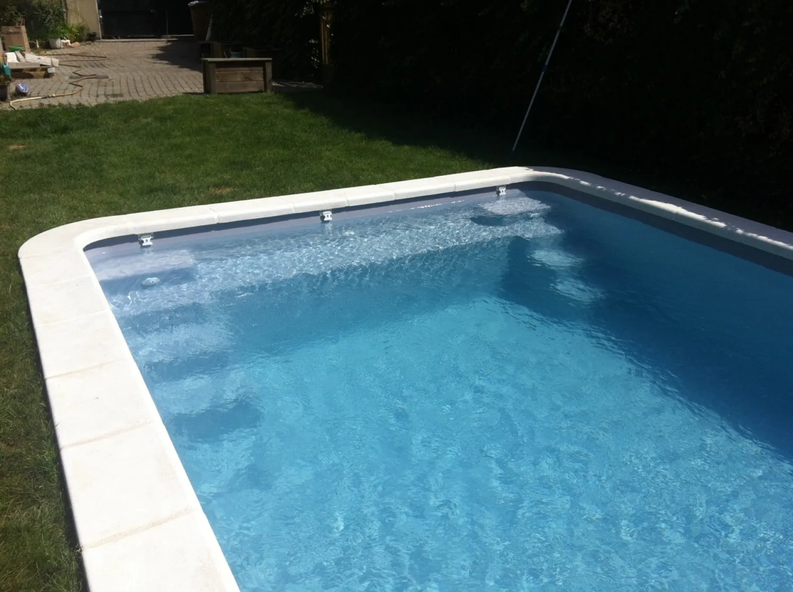 Matériel inclus: Projecteur à led blanc – Une pompe de filtration – Un filtre à sable – Une vanne à 6 voies – Charge filtrante sable et gravier ( verre filtrant en option) – Un skimmer + réhausse – Une bonde de fond – Un bouchon de sécurité – Une prise balai – Deux buses de refoulement – Un aquaterre – Une brosse de parois – Une épuisette de fond – Un balai aspirateur – Un tuyau flottant – Un manche télescopique – Un thermomètre – Une trousse d’analyse