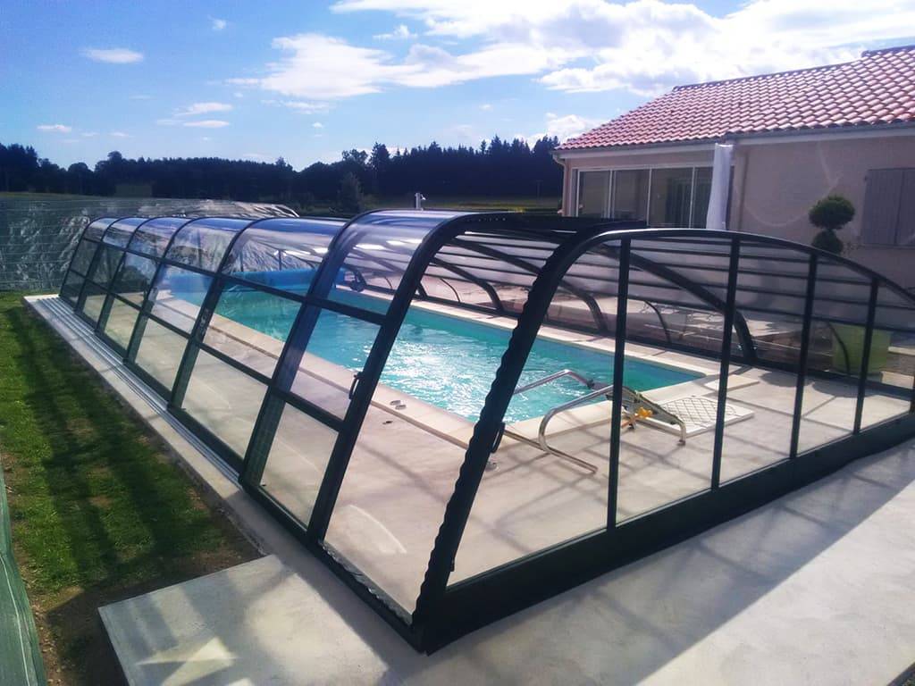 ABRIDAYS Mi-Haut est le compromis idéal, conjuguant la facilité de mise en oevre de l'abri bas, car il n'est pas soumis à une déclaration de travaux ni à aucune taxe (hauteur inférieure à 1.80 m), et les avantages d'un abri haut pour le confort de la baignade.