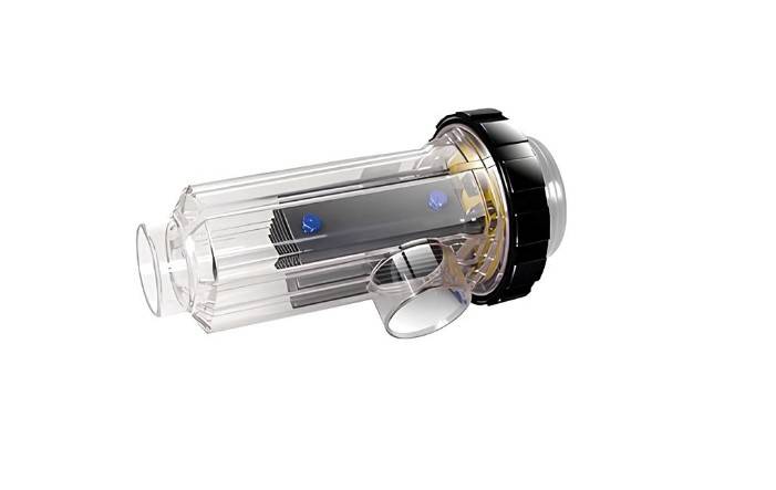 L’eau légèrement salée, avec une concentration de 2 à 5 g/L (environ 9 à 10 fois moins salée que l’eau de mer), passe dans la cellule de l’électrolyseur, qui convertit le sel en chlore naturel (acide hypochloreux). Ce chlore élimine les micro-organismes tels que les bactéries et les algues avec la même efficacité que le chlore chimique, sans les inconvénients associés (irritations, odeurs, etc.).