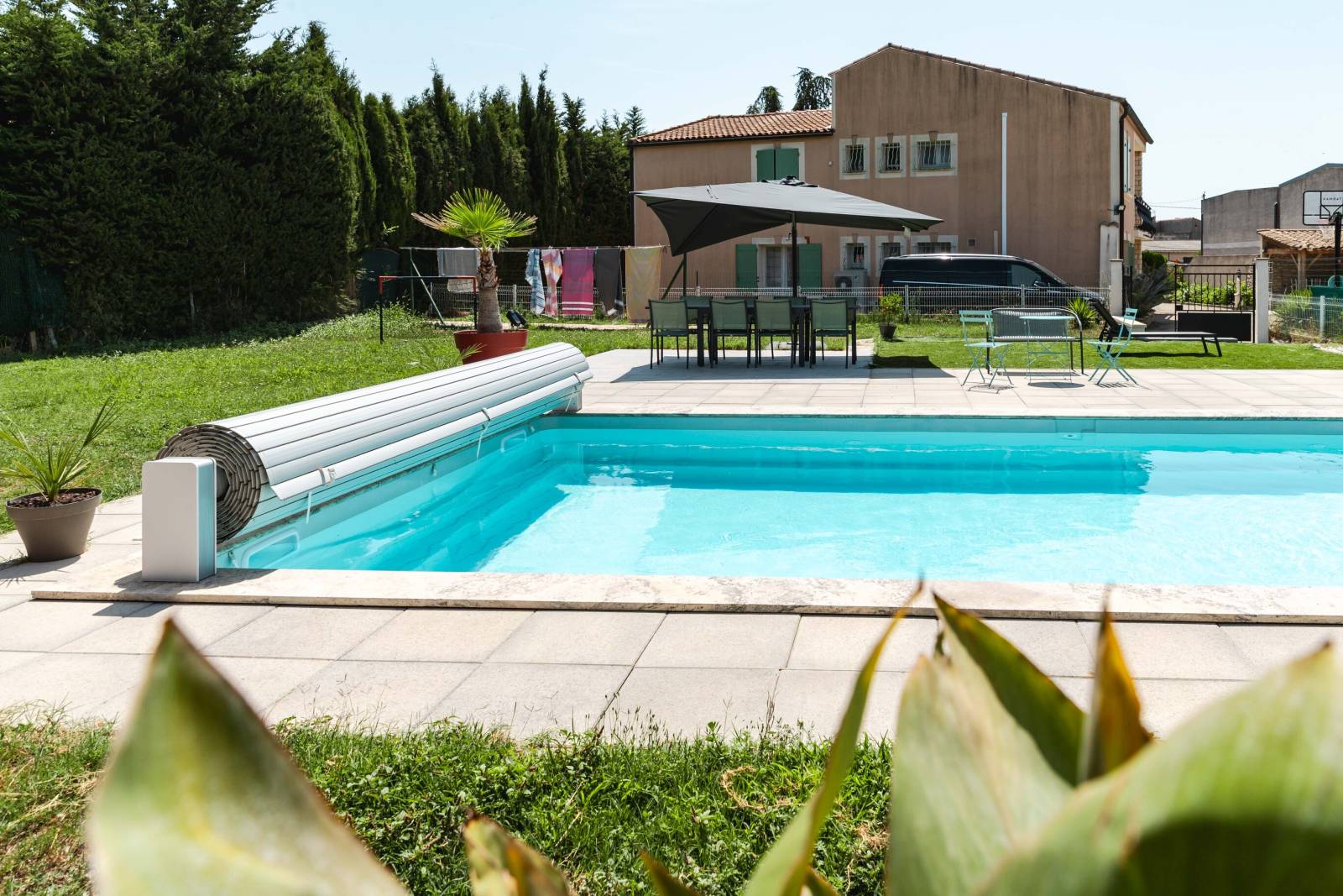 Nos clients ont opté pour le modèle MANUA de la marque ABORAL, une piscine coque aux dimensions de 9,90 x 4,12 mètres avec un fond plat de 1,50 mètre. Située à Nîmes, dans le Gard, cette piscine est équipée d'un volet hors sol modèle SVELTEA de chez FLUIDRA, offrant une solution élégante et pratique pour la protection et l'entretien du bassin.