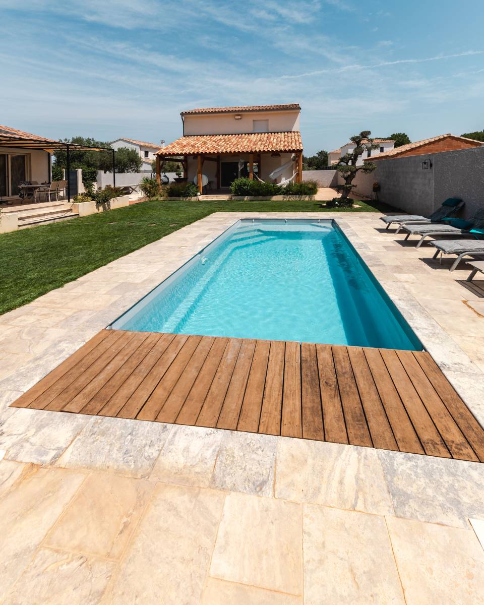 Ce modèle est également équipé d'un volet automatique immergé avec un caillebotis en bois, pour une finition pratique et esthétique.