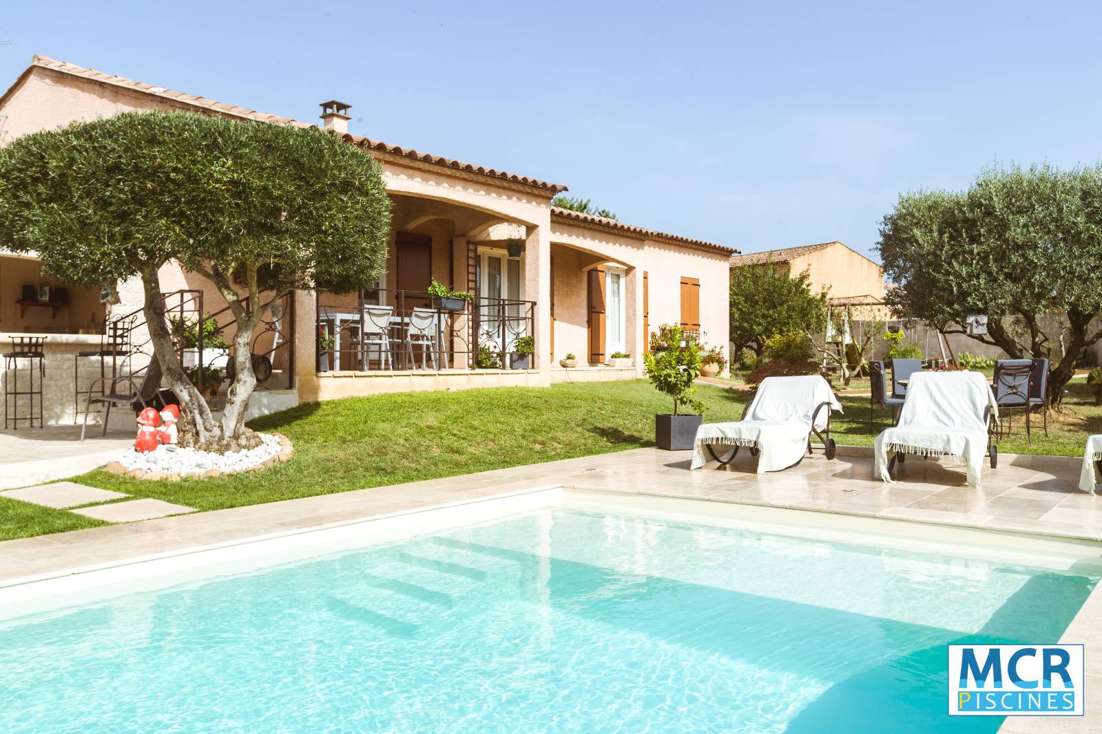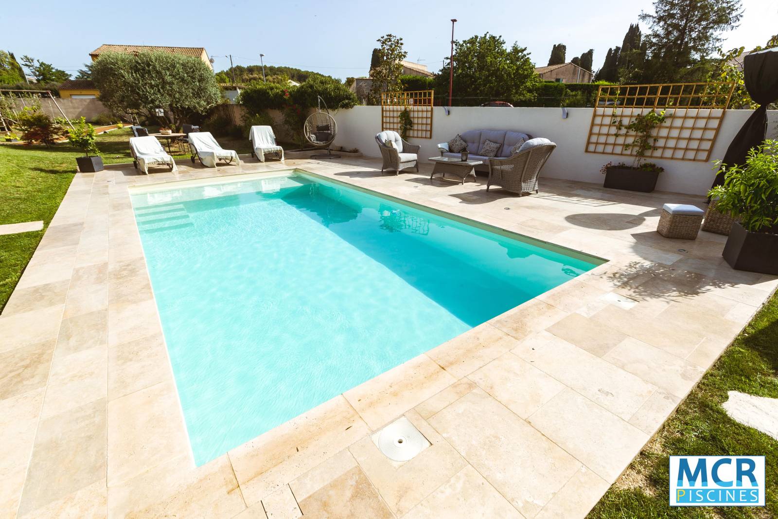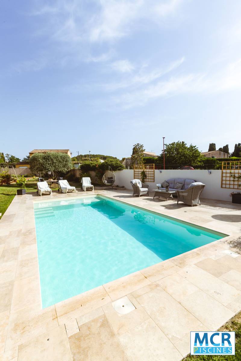 La piscine à coque polyester modèle SAMOA, signée France Piscines Composites et proposée par MCR Piscines, est un choix idéal pour les grands jardins.